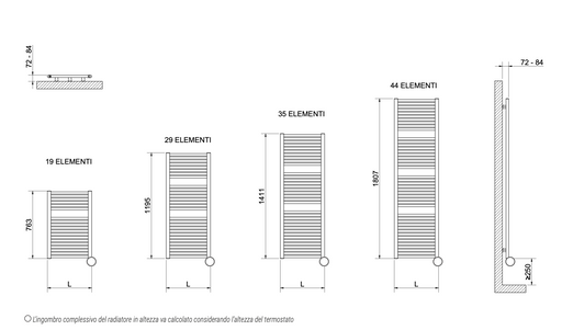 Scaldasalviette Termoarredo bagno bianco o colorato orizzontale SAMIRA CORDIVARI interasse 970 1170 - 1370 H 300 - 480-600 Venduto con i kit di fis...